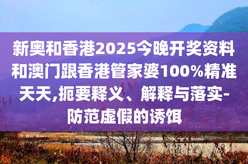 新奥和香港2025今晚开奖资料和澳门跟香港管家婆100%精准天天的扼要释义、解释与落实