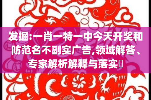 一肖一特一中今天开奖:领域解答、专家解析解释与落实