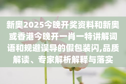 新奥2025今晚开奖资料”和“新奥或香港今晚开一肖一特讲解词语”的品质解读、专家解析解释与落实,以及规避误导的假包装闪诱